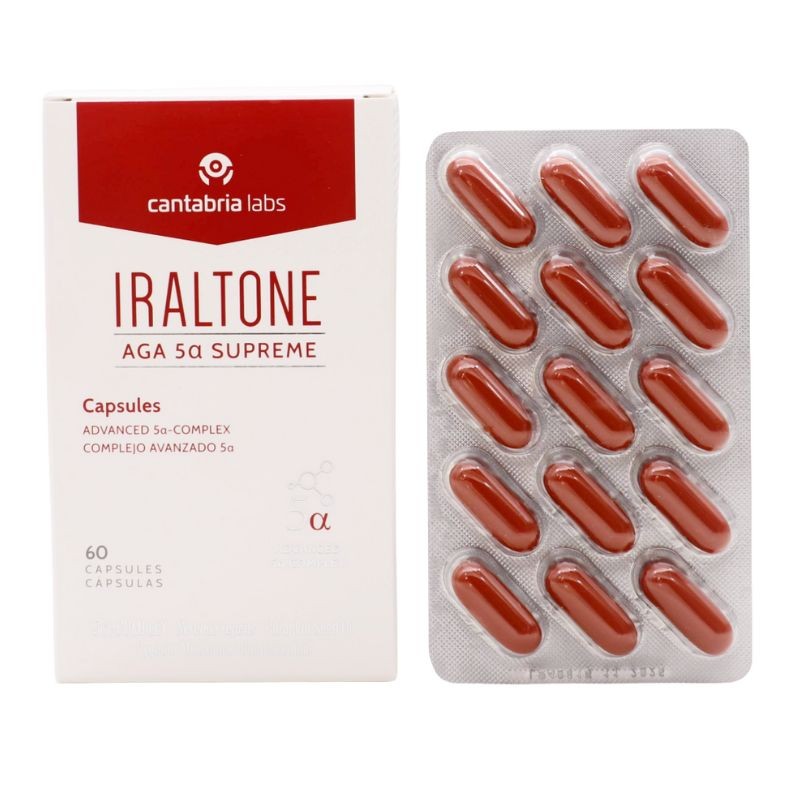 Iraltone AGA 5 Alfa Supreme es un complemento alimenticio anticaída que actúa desde el interior sobre los factores responsables de la caída capilar. Formulado con extracto de Serenoa repens, L-Cistina, Zinc y Vitaminas del grupo B, contribuye a fortalecer el cabello, frenar la caída y estimular el crecimiento. Ideal para hombres y mujeres con caída capilar androgénica o estacional.