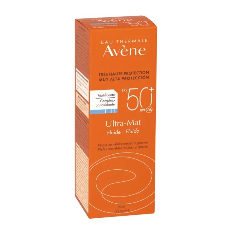 Avène Ultra Mat Fluído SPF50+ ofrece una protección solar muy alta frente a los rayos UVA y UVB, con un acabado mate y sin brillos. Su textura ligera y fluida se absorbe al instante, dejando la piel suave, fresca y protegida durante todo el día. Ideal para pieles mixtas o grasas, incluso las más sensibles.