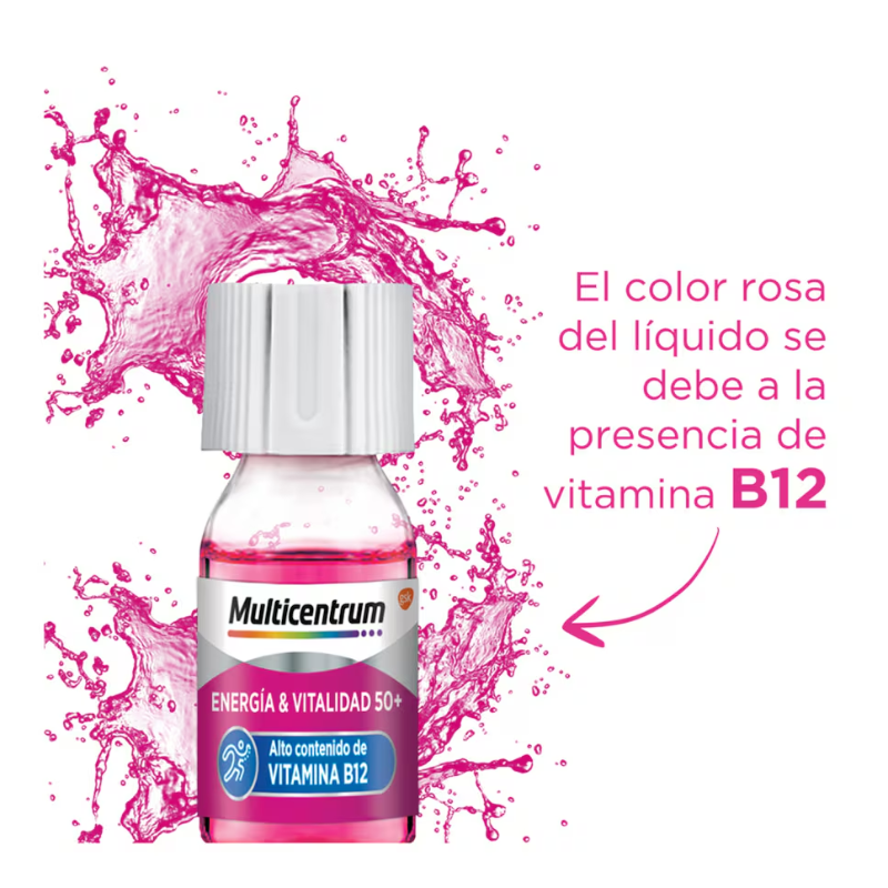 Multicentrum Energía & Vitalidad 50+ es un complemento multivitamínico en formato listo para beber con delicioso sabor a frambuesa, diseñado específicamente para adultos mayores de 50 años. Formulado para contrarrestar la posible disminución en la absorción de nutrientes esenciales en esta etapa de la vida, este complemento alimenticio promueve la energía, el funcionamiento normal del metabolismo energético y combate la fatiga, el cansancio y la falta de concentración.